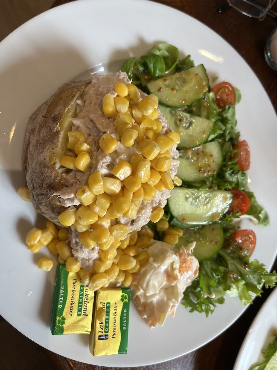 Lunch options are equally tempting, from the delightful Bacon, Lettuce, and Tomato Sandwich (£6.25) to the sophisticated Prawn with Marie Rose Sauce Baguette (£6.75). Each dish shines with freshness and bold flavors, complemented by a variety of salads, like the indulgent Bacon, Stilton & Avocado.
